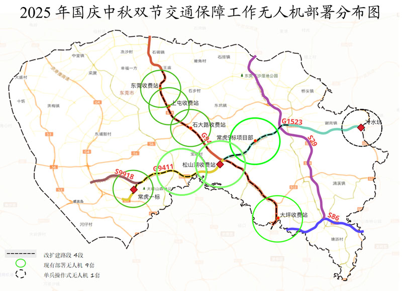 與往年不同的是,今年國慶中秋長假期間,東莞市低空經(jīng)濟(jì)發(fā)展有限公司(以下簡稱“低空經(jīng)濟(jì)公司”)在東莞交控集團(tuán)的統(tǒng)籌安排下,以“機(jī)巢式無人機(jī)+單兵操作式無人機(jī)”協(xié)同作業(yè)模式,整合兩者優(yōu)勢,形成“定點(diǎn)駐守+靈活巡查”的立體作業(yè)體系,對(duì)重點(diǎn)交通堵點(diǎn)實(shí)現(xiàn)精準(zhǔn)覆蓋,與固定監(jiān)控相互補(bǔ)充構(gòu)建空地一體化動(dòng)態(tài)監(jiān)控網(wǎng)絡(luò),為廣大市民出行的通暢與安全提供技術(shù)保障。